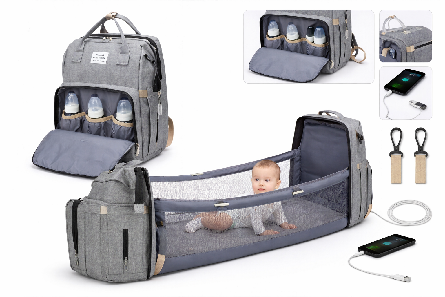 La mochila cambiador multifunción es la solución perfecta para padres modernos que buscan comodidad, organización y practicidad en cada salida con su bebé. Diseñada con múltiples compartimentos y función extensible tipo mini cuna, combina almacenamiento inteligente con máxima funcionalidad.